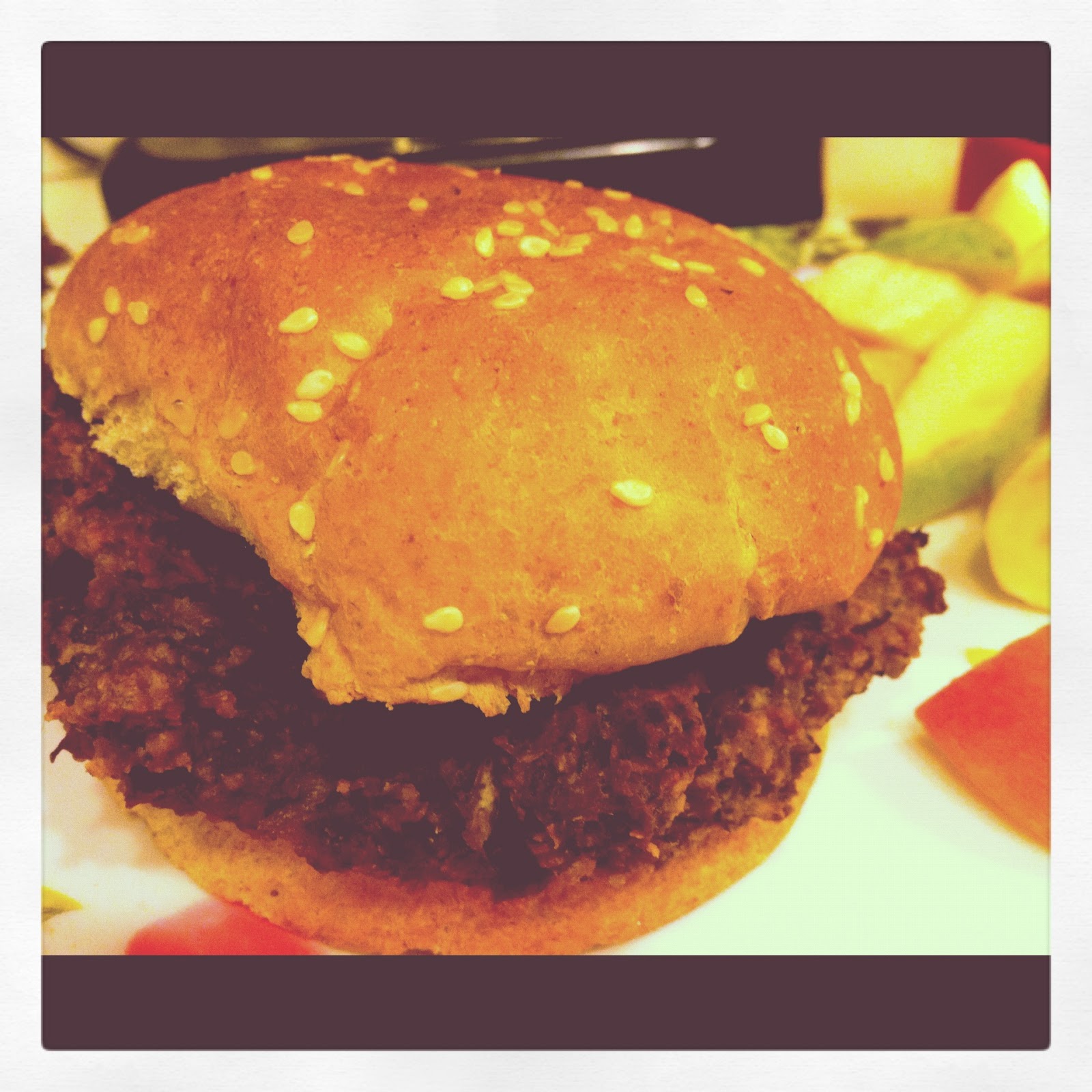 Preheat oven to 450 degrees. Put all ingredients except the bread crumbs and the flour into a food processor and pulse for about 20 seconds. Pour mixture into a bowl and mix with bread crumbs and flour. Form into six patties and place on a sprayed non stick baking sheet and top with 1 tbs of olive oil ( spread on each patty). Put the burgers in the oven and bake for 45 minutes or until slightly crispy on the top. Top with cheese, avocado, organic ketchup and serve on whole wheat buns!!